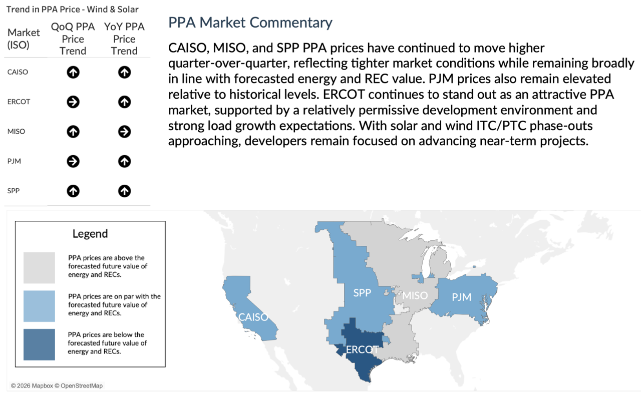 - NYISO saw a similar impacts from Winter Storm Fern. Generators in the state had to rely on oil as gas was scarce, and snow on solar equipment impacted solar generation. The Special Case Resource program was activated multiple times from January 25-January 30 and sustained below-normal temperatures through the last week in January pushed peak load to 24,177 MW on 1/30/26. NYCA all-time winter electric peak load was 25,738 MW on 1/7/2014, the year of the ‘Polar Vortex.’ Index prices soared across the NYCA, pulling up monthly day-ahead January average index prices significantly, even surpassing January all-time high day-ahead index prices established in 2014. Zone A DA index for January was $159.02/MWh (174% above the 5-yr average); zone F DA index for January was $188.17/MWh, zone G DA index for January was $187.76/MWh, and zone J DA index for January was $189.10/MWh (124% above the 5-yr average).