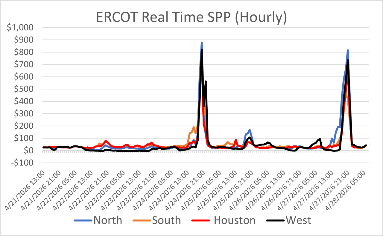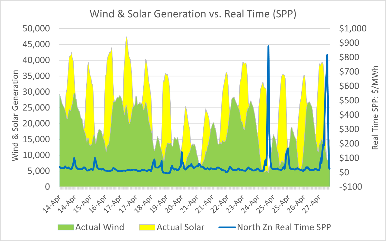 - The CAISO electricity market is at the tail end of this supply-demand imbalance through increasingly volatile and often negative pricing at both trading hubs that includes the number 15. Day ahead settlement prices for peak flow today at SP15 barely cracked the $0 waterline, clearing at $0.43 MWh. They closed well into negative territory the last couple days and the spread between NP and SP was pronounced as SoCal saw impressive solar generation numbers. While peak demand is expected to rise slightly heading into May, providing some stabilization to the grid, the sheer volume of renewable megawatts and the slow ramp in volumes coming in on the SunZia line continue to eat the lunch of thermal generators.