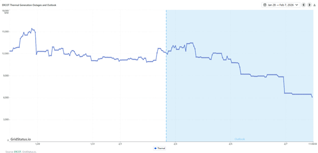 - Production estimates continue to show a decline in freeze-offs as temperatures improve. Daily freeze-offs could fall to less than 2 Bcf/d starting Tuesday, with most of the effects seen in Appalachia.