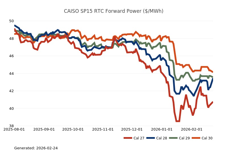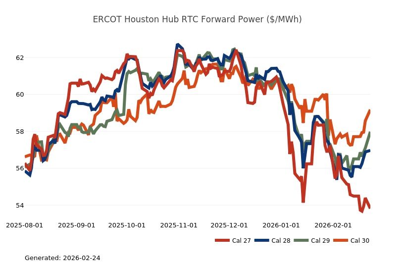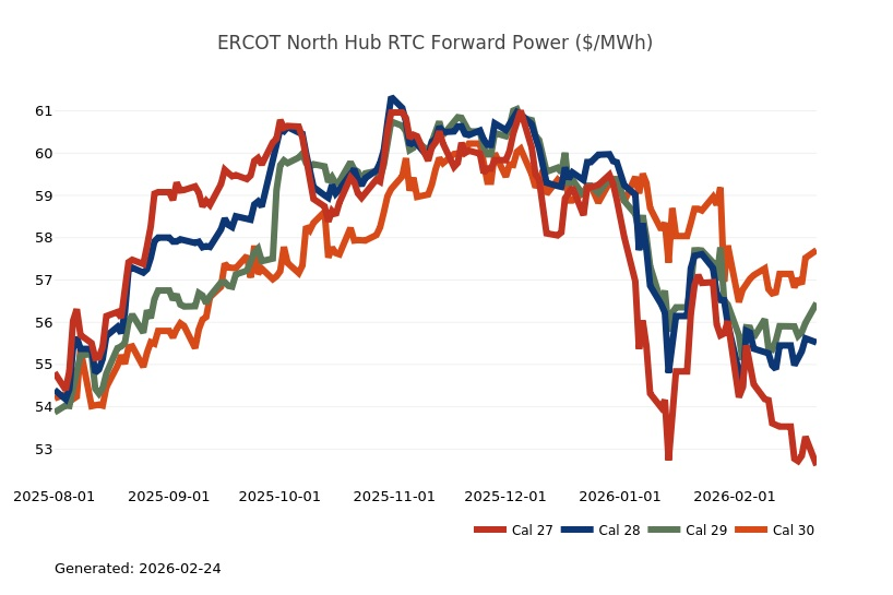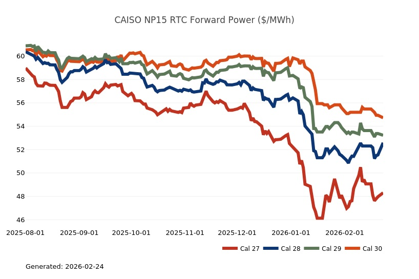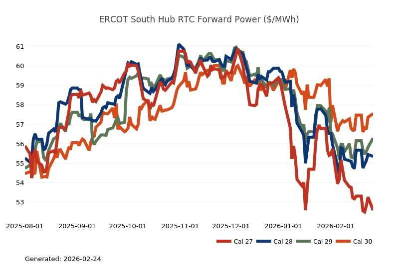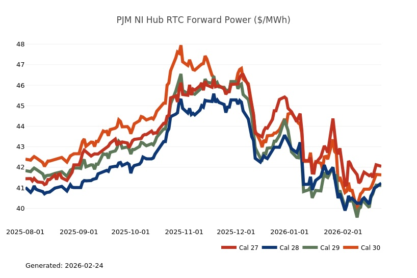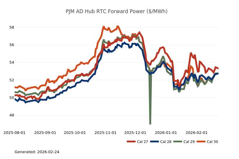 - PJM Board Moves to Extend Price Collar for 2028/2029 and 2029/2030 Capacity Auctions - On 2/12, the PJM Board of Managers announced that it will seek to extend the existing price collar to the 2028/2029 and 2029/2030 capacity auctions, applied to the Variable Resource Requirement Curve parameters recently approved by FERC following the Quadrennial Review, as PJM conducts a broader evaluation of market incentive and advances the stakeholder process to design a backstop procurement mechanism for new supply. The decision follows the Board’s request for stakeholder feedback on a potential extension in its 1/16 decision-letter in the Critical Issues Fast Path (CIFP) stakeholder proceeding addressing large load additions.