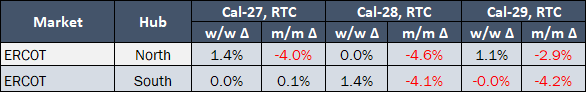 - Henry Hub NYMEX Cal 27-31 strips closed at 3.81 (+0.02), 3.61 (-0.03), 3.60 (-0.01), 3.64 (+0.00), 3.62 (0.00), respectively.