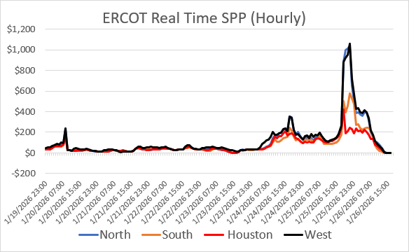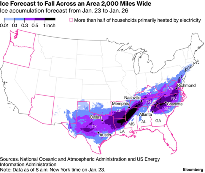 - All eyes on Winter Storm Fern as natural gas production is reduced by freeze-offs and large storage withdrawals expected.