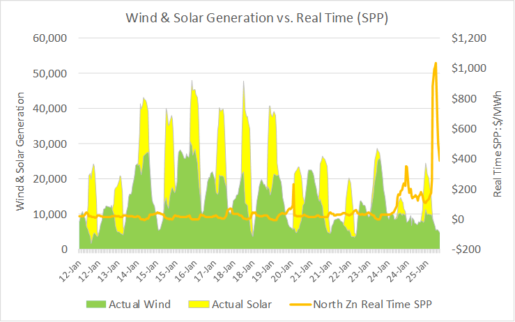 - Auction clears for both gas and power trended stronger over the last week led by outsized settlements for SoCal prices despite recent temps in the LA Basin that started with sixes and sevens during the middays. Notably, SoCal Border settled $4.00 MMBtu above SoCal city gate for the weekend package as the border price is tethered to pricing strength in West Texas. With cash prices skyrocketing in Midcon and Eastern markets, molecules ceased flowing west along the pipelines and sought higher value homes. The Rockies trading hubs are connected to MidCon points and SoCal is tied to Permian Basin. Storage pulls from Aliso Canyon and reduced production due to wellhead freeze-offs also contributed to the situation. Pricing action at PG&E’s city gate largely sat this round out enabling more gas-fired generation to be produced in NorCal and shipped south along Path 15, explaining why SP15 day ahead prices have cleared over NP15 despite abundant sunshine and solar production. This has been welcome news for gas storage operators who were looking for the opportunity to pull gas out of storage in order to clear space for the upcoming refill season.