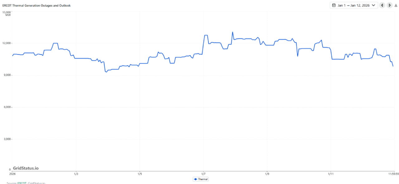 - Month-to-date gas demand for power generation averaged 32.7 Bcf per day versus 35 Bcf per day for the same period last year reflecting a warmer start to January 2026 than last year.