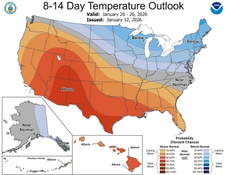 - The first half of January is coming in warm below the Mason-Dixon line and colder in the northern tier.